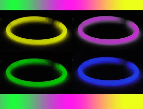 - Такие браслеты можно надеть на руку, сделать из них бусы или, проявив фантазию, создать незамысловатые фигурки для украшения помещения. Изделия одноразовые, они не подзаряжаются. Светятся неоном браслетики до 10 часов, чего вполне достаточно для мероприятия.